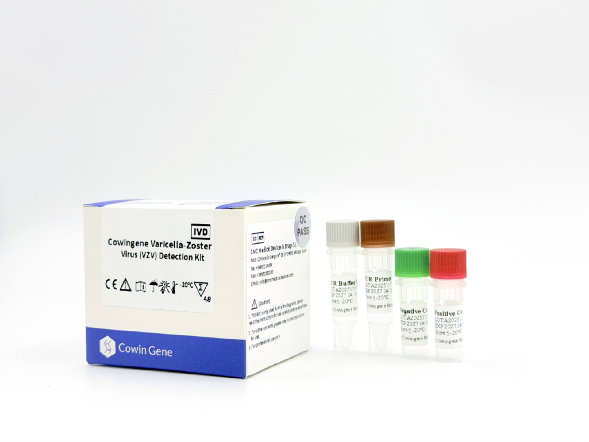 Das Cowingene Varicella-Zoster-Virus (VZV)-Nachweiskit (VZV-Test) ist ein In-vitro-Diagnosetest zum qualitativen Nachweis von Varicella-Zoster-Virus-DNA in Patientenproben. Der Test nutzt die Amplifikation der Ziel-DNA mittels Polymerase-Kettenreaktion (PCR) zum Nachweis des Varicella-Zoster-Virus in einer einzigen Analyse.